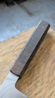 This Chef is a super useful tool for the kitchen. It is perfect for most tasks in the kitchen, the do-it-all knife if you will. The steel is very hard and very thin so will perform beautifully and keep an edge for a long time as long as it is looked after properly. This is also stainless, so it will not patina like some of the other steel I use. Do not put in the dishwasher, though!